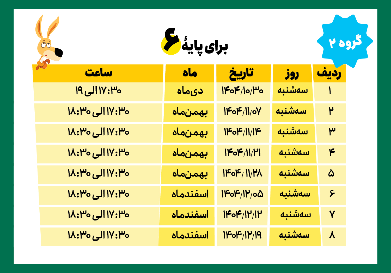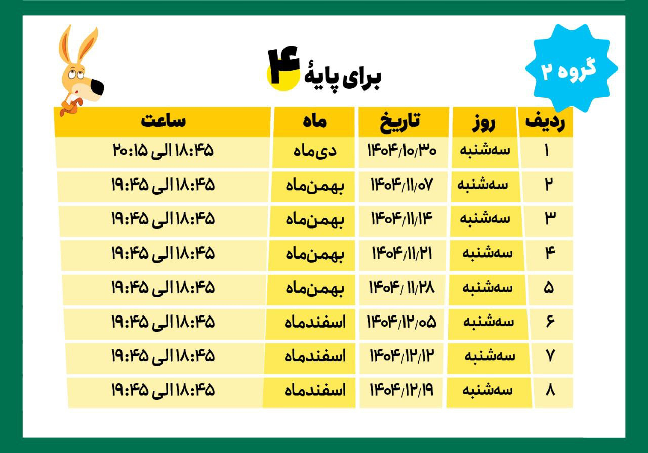 دانشآموزان پایههای دوم، سوم، چهارم، پنجم و ششم مطابق جدول زیر