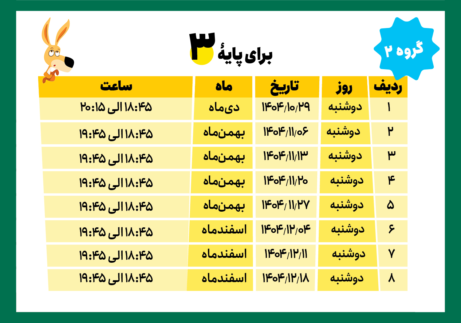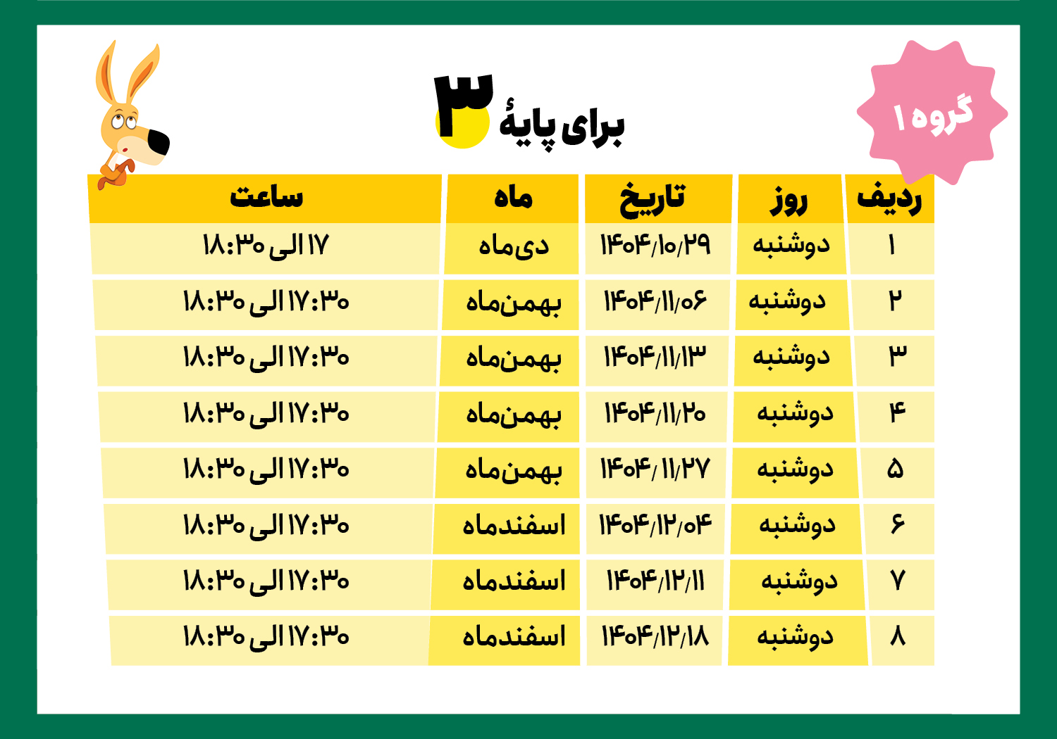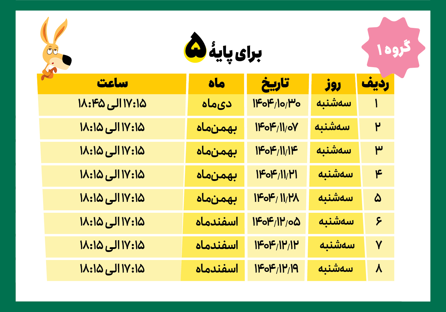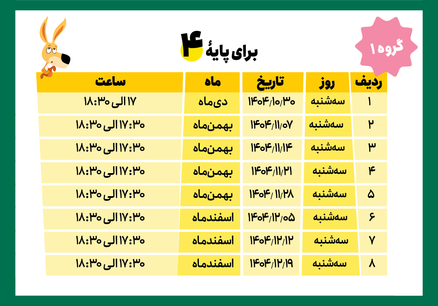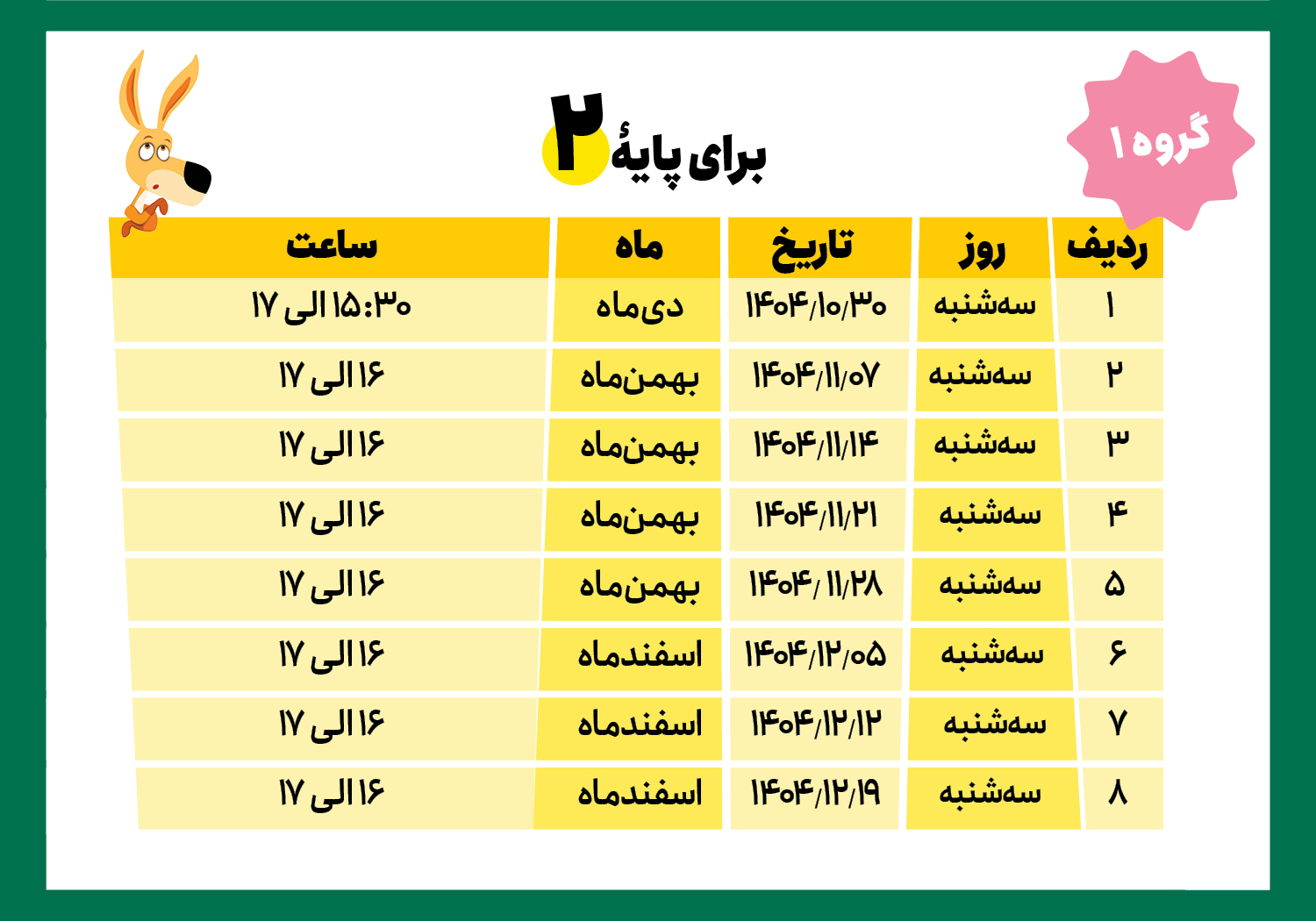 * لطفاً به روز و ساعت کلاسها، پایة تحصیلی و گروهها دقت کنید.
